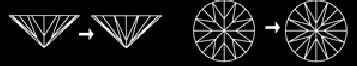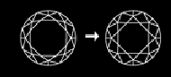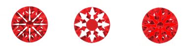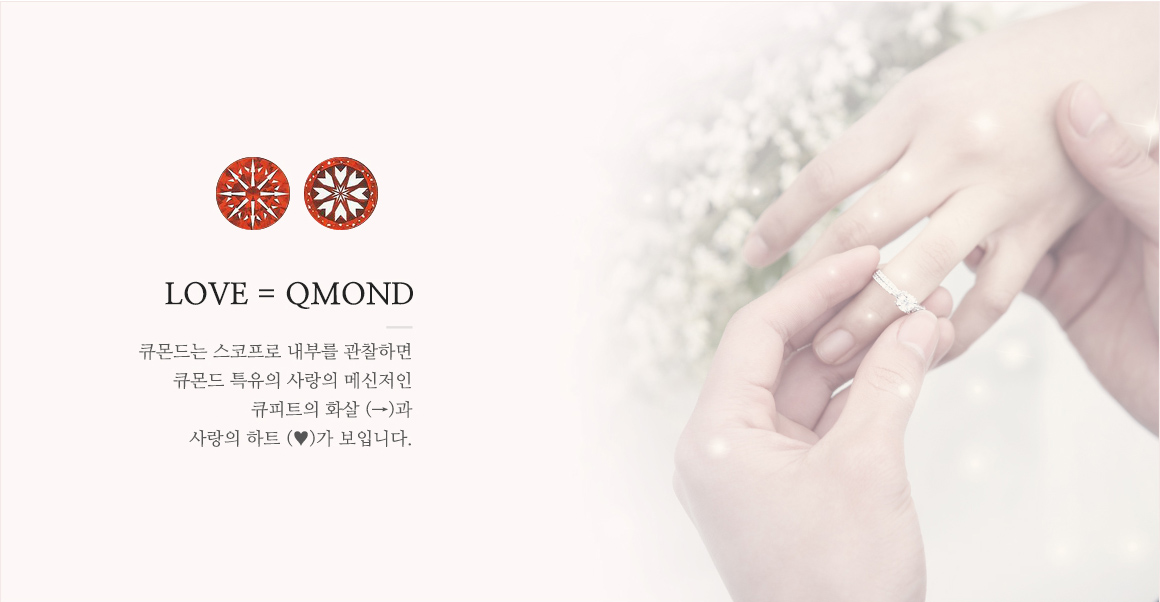 | 큐몬드에서는 특수스코프를 통해 사진과 같은 하트&애로우 현상이 관찰됩니다. | 큐몬드는 다이아몬드와 같이 총 58면으로 연마되어 있습니다. |